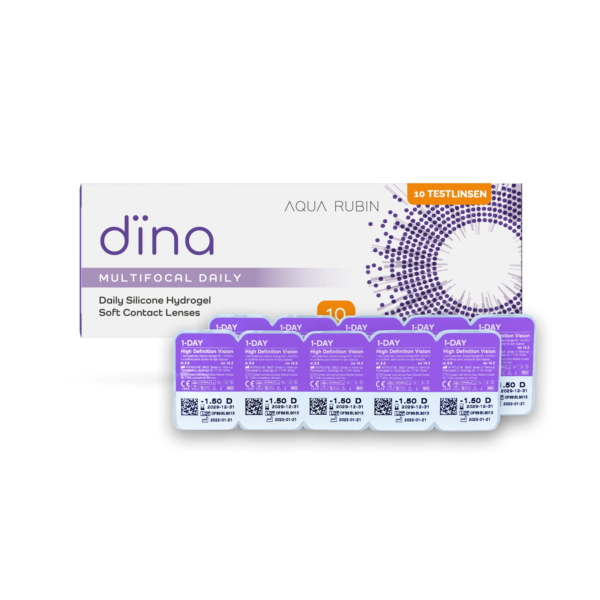 Die Aqua Rubin Dina Tageslinse gibt es in den Packungsgrößen: 10er, 30er, 90er, 180er Packung.